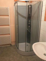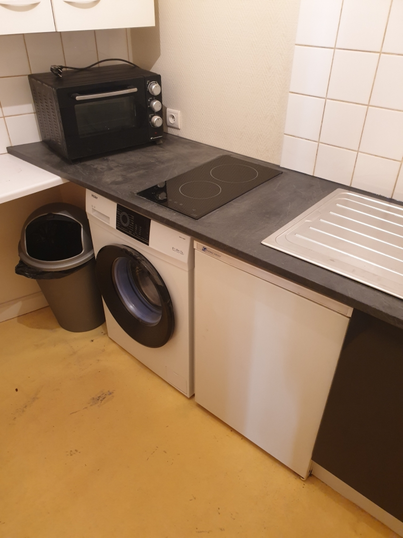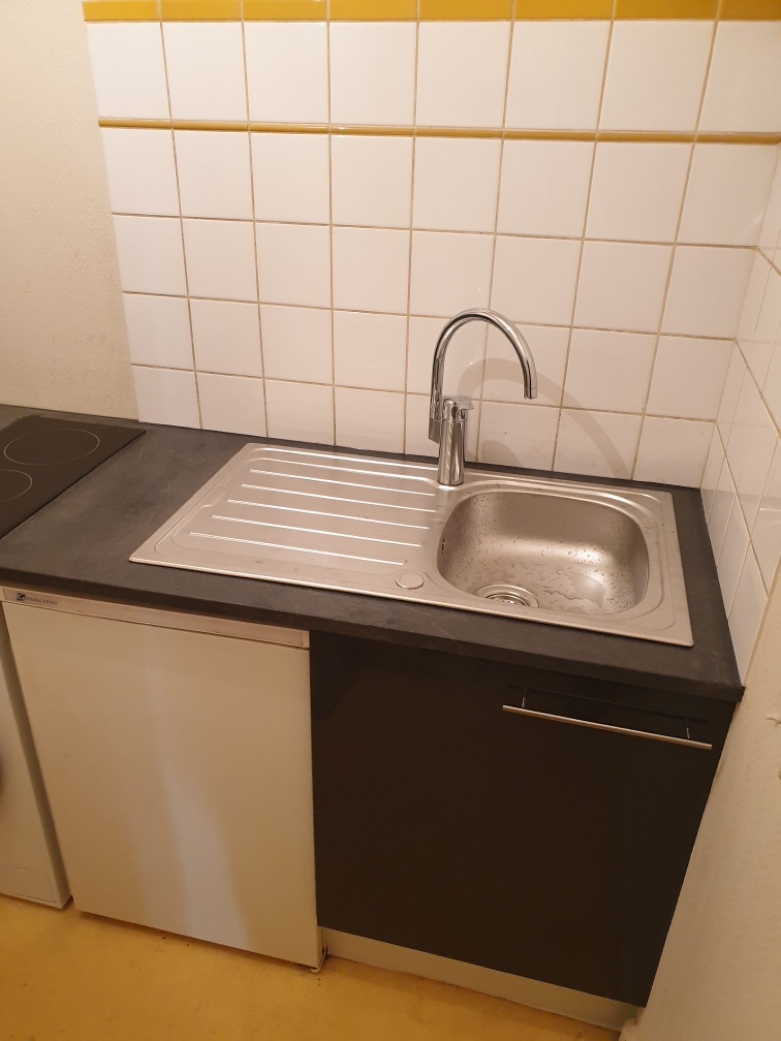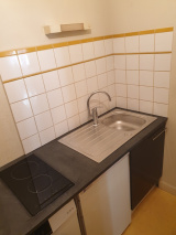 Agréable Appartement T2 en rez de chaussée : Belle et spacieuse pièce principale avec placards, Coin cuisine aménagée (Plaque de cuisson, Réfrigérateur), une grande chambre avec placards, salle de bains avec douche et WC.
