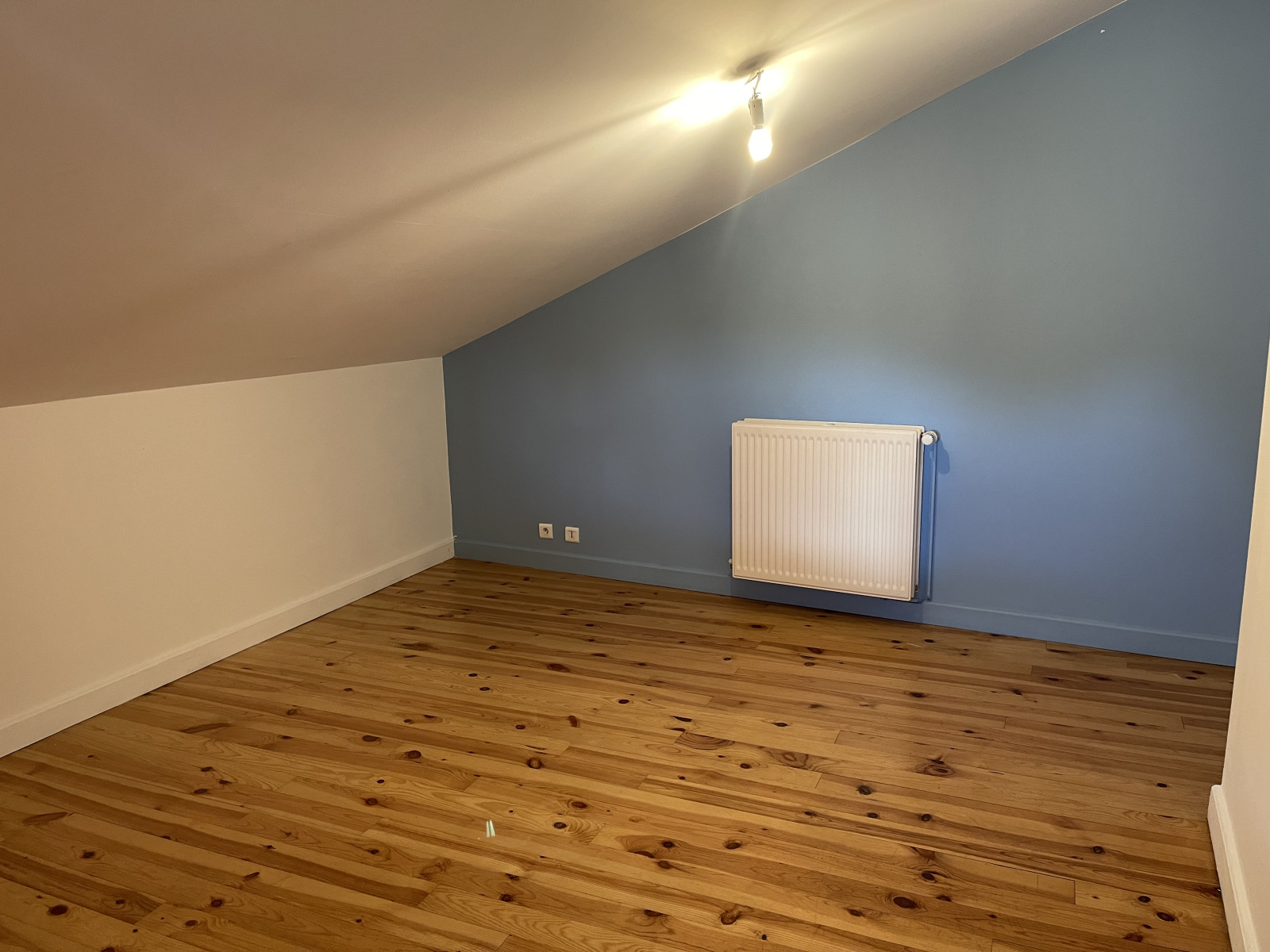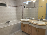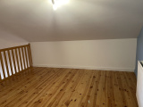 A l'étage : mezzanine, une chambre avec placards sous pente, salle de bains avec baignoire et meuble double vasque, WC séparé, une chambre