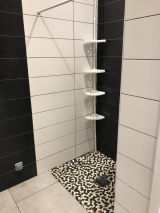 Appartement T2 en rez-de-chaussée : Entrée, Cuisine équipée (Plaque de cuisson, hotte, Four) ouverte sur belle pièce principale, une chambre avec placards, salle d'eau avec douche à l'italienne, buanderie, WC.
