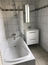 Agréable Appartement T3 : Cuisine moderne et équipée (Plaque de cuisson, hotte, Four, Réfrigérateur), degagement avec placards, WC, pièce principale, dégagement, une chambre, salle de bains.