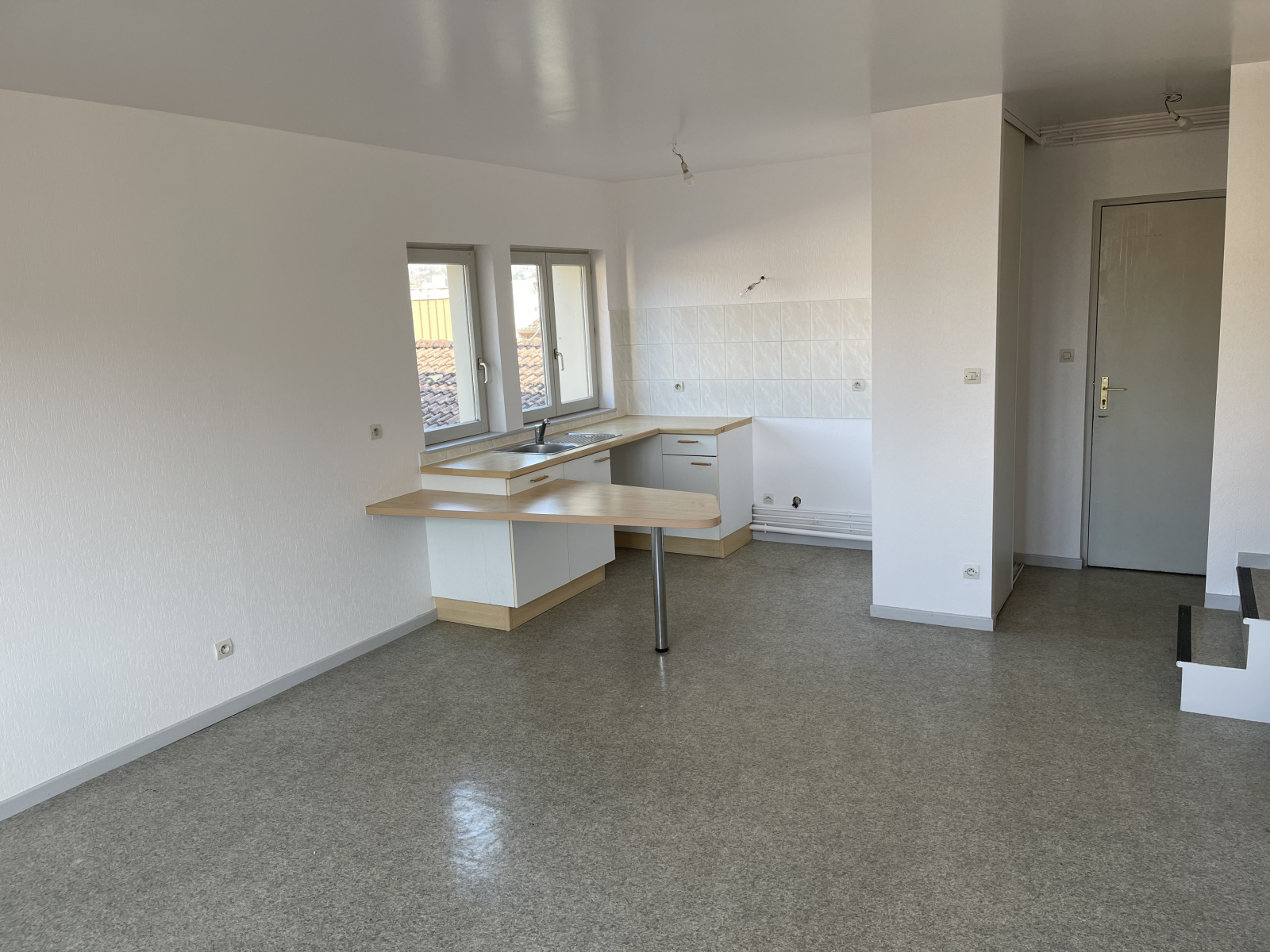 Appartement T3 : Entrée, Cuisine ouverte sur pièce principale, 2 chambres, salle de bains, WC