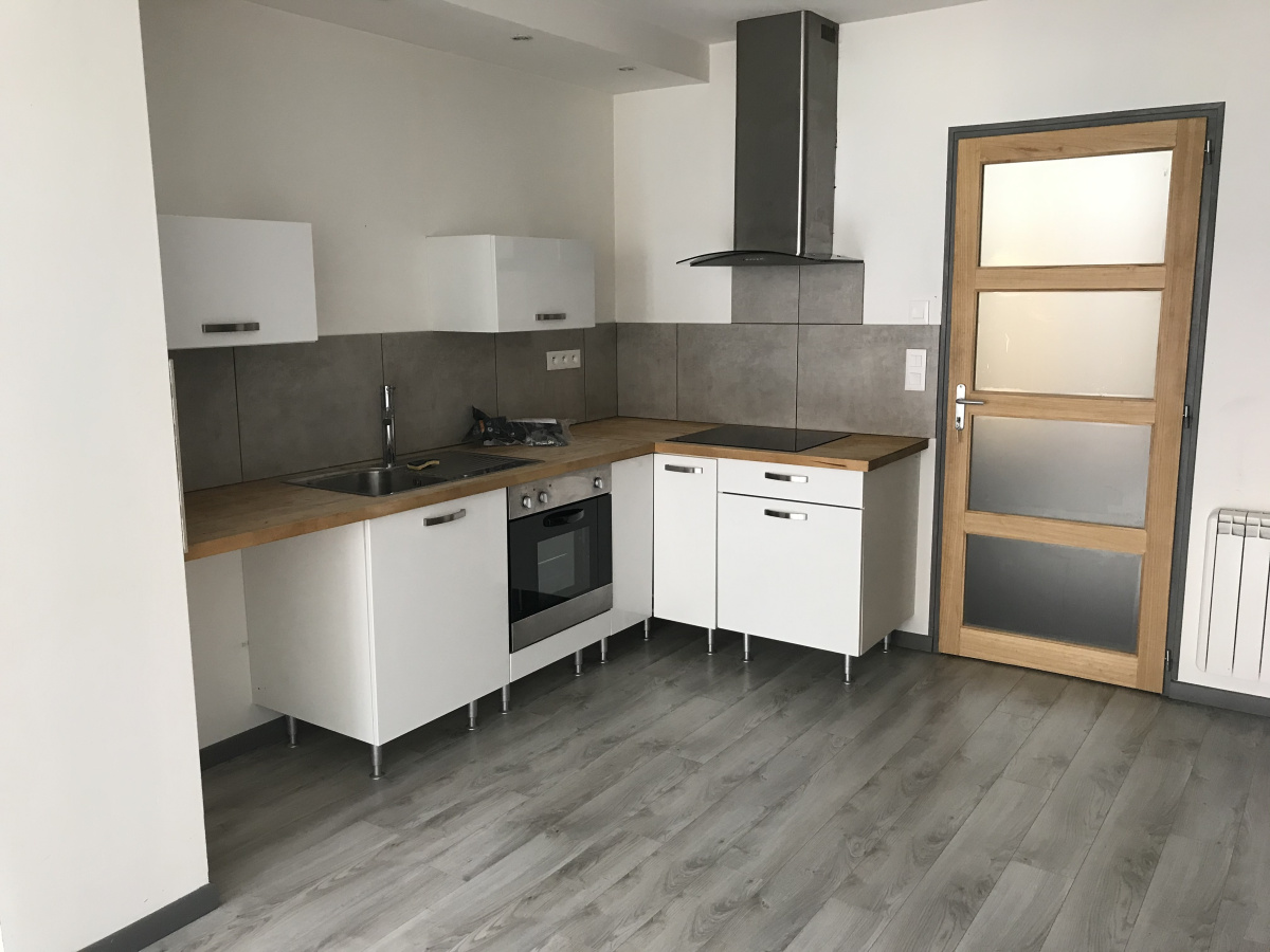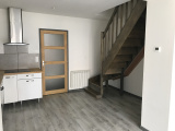 Agréable Appartement T3 Duplex : Entrée, Cuisine équipée (Plaque de cuisson, hotte, Four) ouverte sur pièce principale, WC